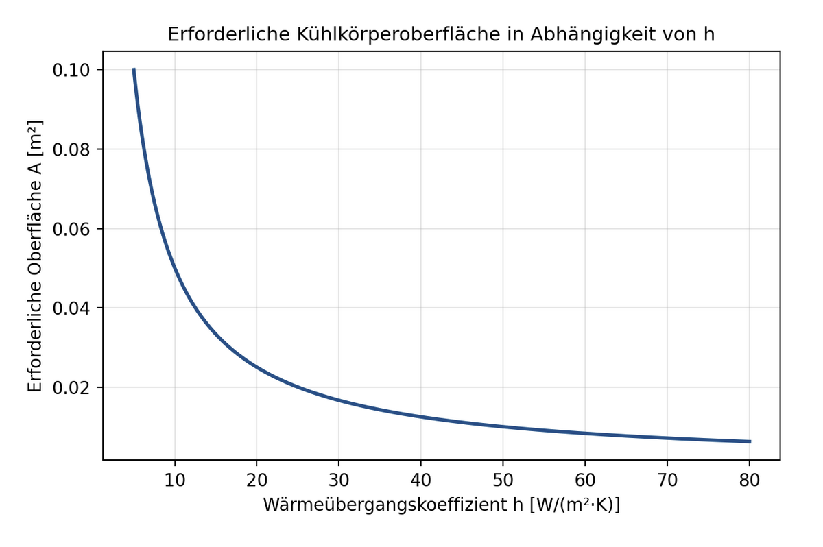Bei natürlicher Konvektion ist dieser relativ gering. Durch Zwangsbelüftung, beispielsweise mit Lüftern, kann der Wärmeübergang deutlich verbessert werden. Dies führt zu einer kleineren erforderlichen Oberfläche für denselben Temperaturhub.